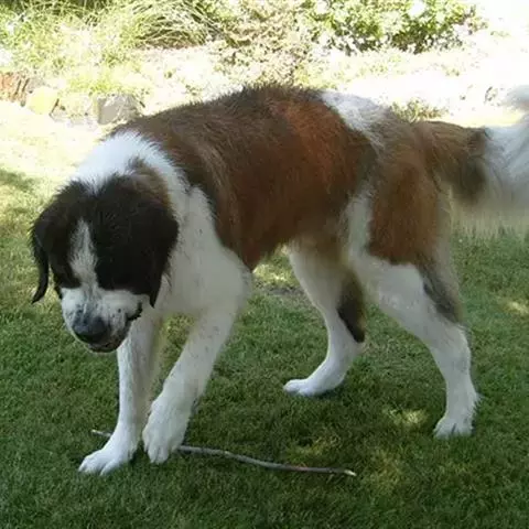 肩部:肩膀粗壮有力,稍微靠后;从前面看,前腿结实笔直;骹骨比垂直方向向前倾斜15度。 前臂:直,骨量重。 后躯:与前半部一样,宽阔,肌肉发达,骨骼健壮。大腿比较发达,髋关节适当弯曲,腿关节适当向下,既不内收也不外翻。 脚:厚,圆,拱形且紧。
