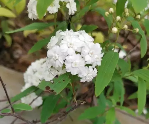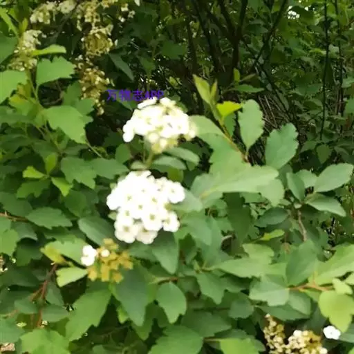 麻叶绣线菊(学名:Spiraea cantoniensis Lour.):蔷薇科、绣线菊属灌木,高可达1.5米;小枝细瘦,冬芽小,卵形,叶片菱状披针形至菱状长圆形,上面深绿色,下面灰蓝色,两面无毛,叶柄无毛。伞形花序具多数花朵;苞片线形,萼筒钟状,萼片三角形或卵状三角形,花瓣近圆形或倒卵形,白色;花盘由大小不等的近圆形裂片组成,子房近无毛,蓇葖果直立开张,花柱顶生,4-5月开花,7-9月结果。