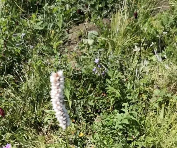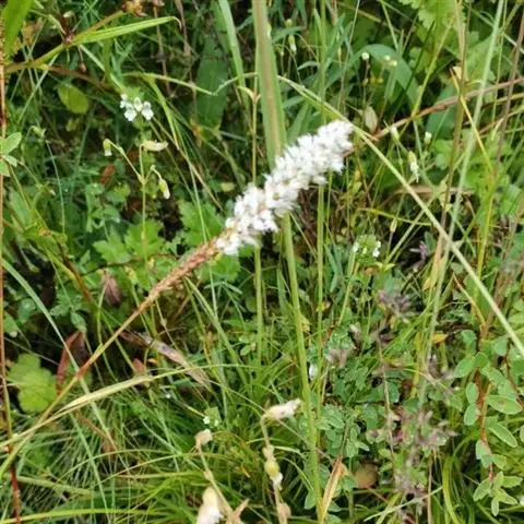 总状花序呈穗状, 拳参 顶生,长4-9厘米,直径0.8-1.2厘米,紧密;苞片卵形,顶端渐尖,膜质,淡褐色,中脉明显,每苞片内含3-4朵花;花梗细弱,开展,长5-7毫米,比苞片长;花被5深裂,白色或淡红色,花被片椭圆形,长2-3毫米;雄蕊8,花柱3,柱头头状。