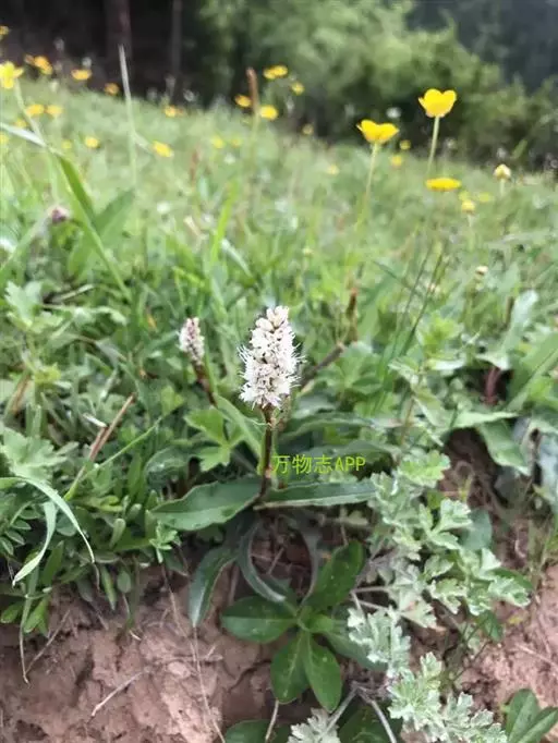 拳参,又名:拳蓼,拉丁学名:Polygonum bistorta L. 属蓼目,蓼科多年生草本,高50~90厘米。根茎肥厚扭曲,外皮紫红色。茎直立,单一或数茎丛生,不分枝。根生叶丛生,有长柄;叶片椭圆形至卵状披针形,长12~18厘米,宽2.5~6厘米,先端短尖或钝,基部心形或圆形。下延成翅状,边缘外卷,无毛,或有时下面疏被柔毛。茎生叶较小,近乎无柄,叶片披针形至线形;托叶鞘膜质,管状,长达3厘米。生山坡草地、山顶草甸,海拔800-3000米。分布于中国、日本、蒙古、哈萨克斯坦、俄罗斯。