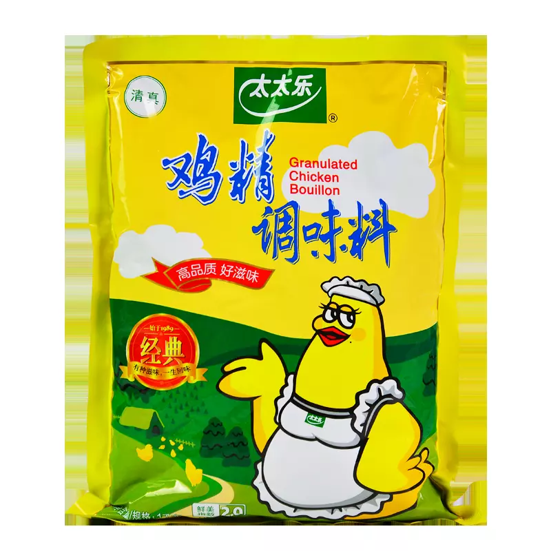 1984年 太太乐创始人荣耀中先生开发了以鸡肉为基料的第三代复合鲜味料,取名鸡精,意为“鲜鸡之精华”