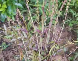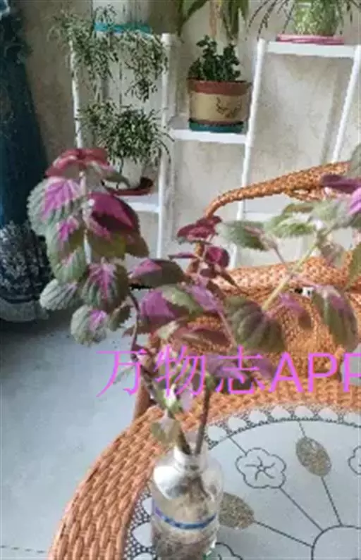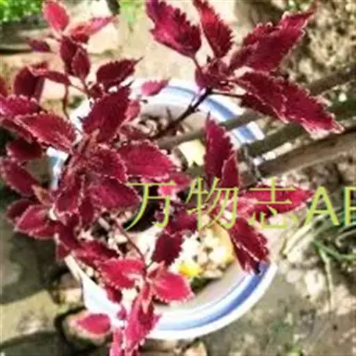 直立或上升草本。茎通常紫色,四稜形,被微柔毛,具分枝。叶膜质,其大小、形状及色泽变异很大,通常卵圆形,长4-12.5厘米,宽2.5-9厘米,先端钝至短渐尖,基部宽楔形至圆形,边缘具圆齿状锯齿或圆齿,色泽多样,有黄、暗红、紫色及绿色,两面被微柔毛,下面常散布红褐色腺点,侧脉4-5对,斜上升,与中脉两面微突出;叶柄伸长,长1-5厘米,扁平,被微柔毛。轮伞花序多花,花时径约1.5厘米,多数密集排列成长5-10(25)厘米、宽3-5(-8)厘米的简单或分枝的圆锥花序;花梗长约2毫米,与序轴被微柔毛;苞片宽卵圆形,长2-3毫米,先端尾尖,被微柔毛及腺点,脱落。花萼钟形,10脉,开花时长2-3毫米,外被短硬毛及腺点,果时花萼增大,长达7毫米,萼檐二唇形,上唇3裂,中裂片宽卵圆形,十分增大,果时外反,侧裂片短小,卵圆形,约为中裂片之半,下唇呈长方形,较长,2裂片高度靠合,先端具2齿,齿披针形。花冠浅紫至紫或蓝色,长8-13毫米,外被微柔毛,冠筒骤然下弯,至喉部增大至2.5毫米,冠檐二唇形,上唇短,直立,4裂,下唇延长,内凹,舟形。雄蕊4,内藏,花丝在中部以下合生成鞘状。花柱超出雄蕊,伸出,先端相等2浅裂。花盘前方膨大。小坚果宽卵圆形或圆形,压扁,褐色,具光泽,长1-1.2毫米。花期7月。