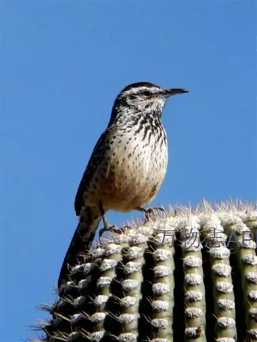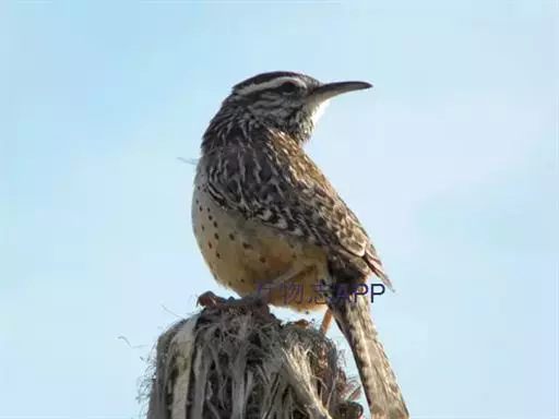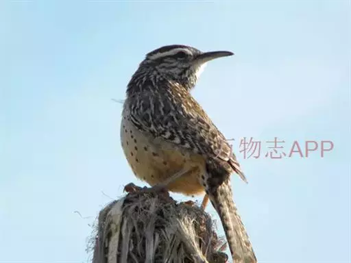 7、棕曲嘴鹪鹩美国西南部亚种(学名:Campylorhynchus brunneicapillus sandiegense)