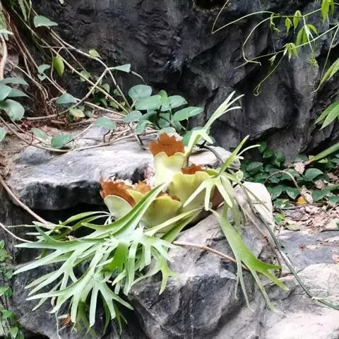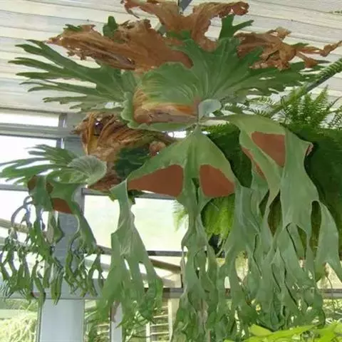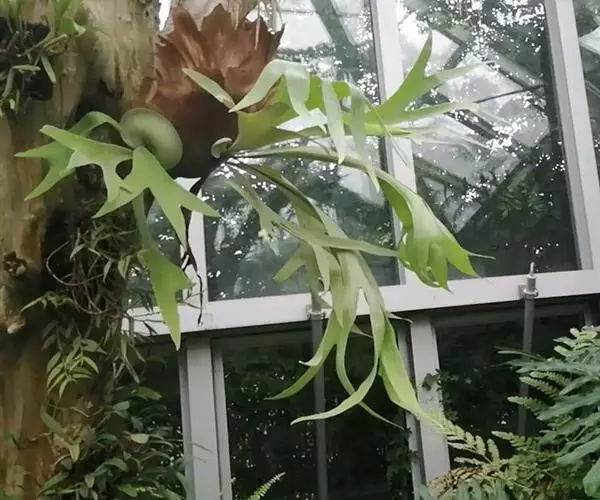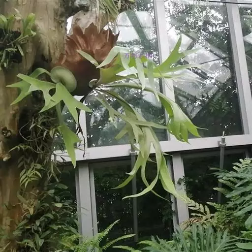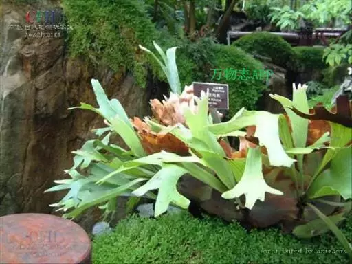 鹿角蕨是观赏蕨中姿态最奇特的一类,属附生性观赏蕨。鹿角蕨可布置于公园、植物园、商店、居室、窗台等地方的装饰,贴生于古老枯木或装饰于吊盆,作悬吊式或镶挂式布置,是室内立体绿化的好材料。