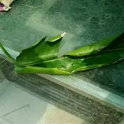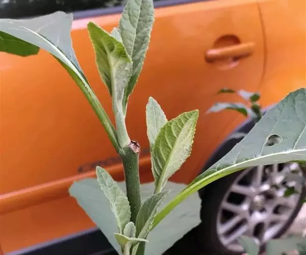 正常能育叶常成对生长,下垂,灰绿色,长25-70厘米。分裂成不等大的3枚主裂片,基部楔形,下延,近无柄,内侧裂片最大,多次分叉成狭裂片,中裂片较小,两者都能育,外侧裂片最小,不育,裂片全缘,通体被灰白色星状毛,叶脉粗而突出。