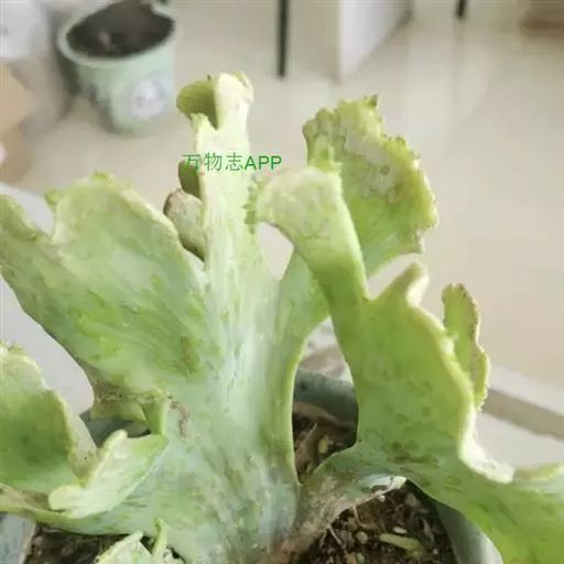 常见有叶斑病危害孢子叶,可用65%代森锌可湿性粉剂600倍液喷洒防治。通风差时,有介壳虫和粉虱危害孢子叶或营养叶,少量时可捕捉或用40%氧化乐果乳油1000倍液喷杀。有些鹿角蕨较易感染真菌或细菌病害,应注意调节通风环境,不要浇水过量。