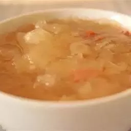 ②汤勺内放入高汤、盐、味精、胡椒粉、姜末、料酒烧开淋入水淀粉勾芡浇在菜上即可。