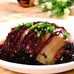 梅菜扣肉,汉族传统名菜,属客家菜 。制作材料有五花肉、梅菜、葱白、姜片等。