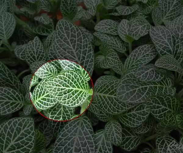 大火焰网纹草:大火焰网纹草的叶片娇小,卵形或椭圆形、叶缘褶皱,叶片平展、叶面深绿色、叶脉砖红色,羽状分布,十分清晰,为主要观赏性状。且姿态轻盈,植株小巧玲玫,叶色转红,纹理匀称,深受人们喜爱。