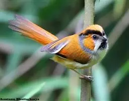 橙顶灶莺:小型鸣禽。体长14-15厘米,体重约21克。上体为橄榄灰色,下体白色,具辐射状排列成行的…