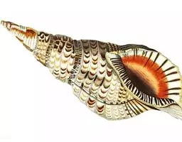 法螺:也称大法螺。贝壳大。壳高351.0毫米,壳宽170.0毫米。螺层约10层。缝合线浅。螺旋部高,…