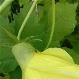咖啡黄葵 Moench)亦称黄秋葵,是锦葵科一年生草本植物。茎圆柱形,疏生散刺。叶掌状,裂片阔至狭,…