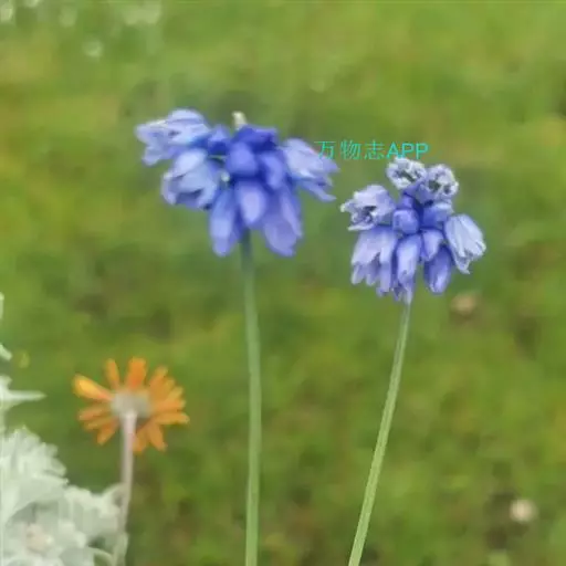 鳞茎数枚聚生,圆柱状,粗0.3-0.5厘米;鳞茎外皮暗褐色,破裂成纤维状,下部近网状,稀条状破裂。叶狭条形,扁平,比花葶短,宽2-5毫米。花葶圆柱状,高15-40厘米,有时矮到5厘米,下部被叶鞘;总苞单侧开裂,早落;伞形花序半球状,具多而密集的花;小花梗近等长,比花被片短或与其等长,基部无小苞片;花钟状,天蓝色;花被片卵形或卵状矩圆形,先端钝,长6-10毫米,宽3-4.5毫米,内轮的边缘常具1至数枚疏离的不规则小齿,且常比外轮的稍长而宽;花丝等长,为花被片长度的1/2-2/3,基部合生并与花被片贴生,合生部分高约1毫米,内轮的基部扩大,有时每侧各具1齿,外轮的基部也常扩大,有时每侧亦各具1齿;子房近球状,腹缝线基部具明显的有窄帘的凹陷蜜穴;花柱比子房短或近等长。花果期7-9月。 该种以条形、扁平的叶,天蓝色的花,花丝比花被片短,花被片卵形至卵状矩圆形,内轮边缘常具小齿而易被识别。