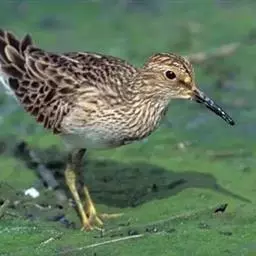 青脚滨鹬是丘鹬科滨鹬属鸟类。小型涉禽,体长12-17厘米。外形大小和长趾滨鹬相似。嘴黑色,脚黄绿色。…