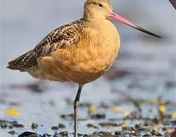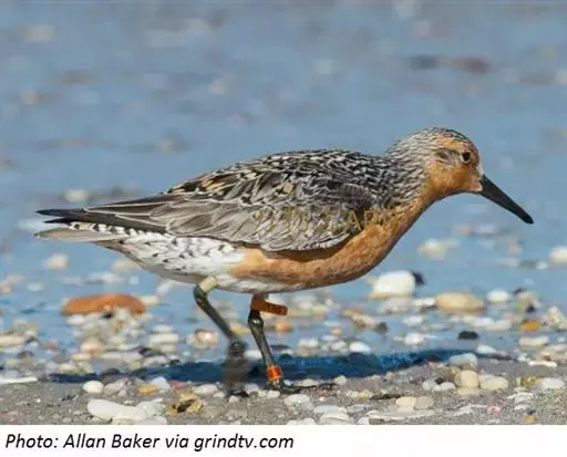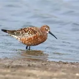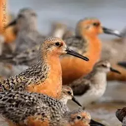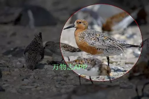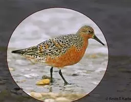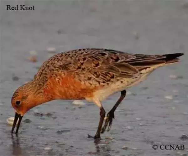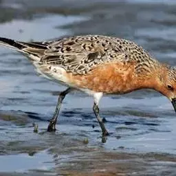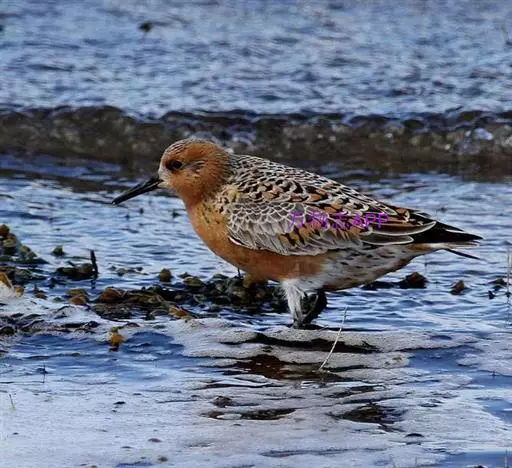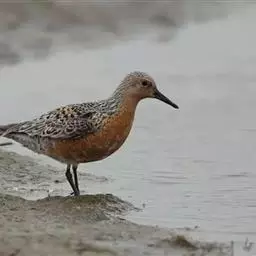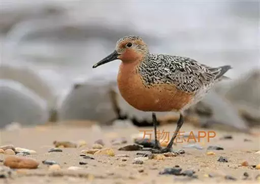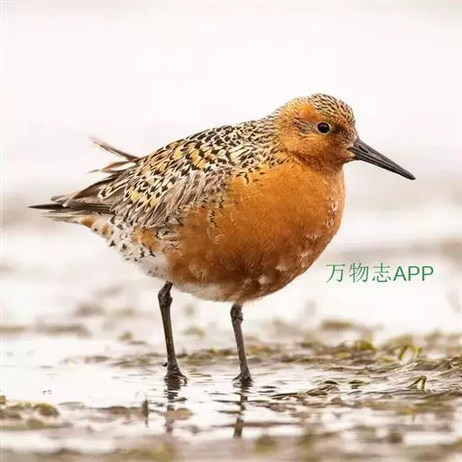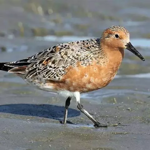 红腹滨鹬(学名:Calidris canutus),是鹬科、滨鹬属的小型涉禽,体长23-25厘米,嘴较短而直、黑色,脚亦甚短、绿色。体较粗胖。夏季上体灰褐色具黑色中央纹,背具棕栗色和白色斑纹和羽缘,头侧和整个下体栗红色。冬季棕红色消失,上体灰色,头具细窄的黑色纵纹,背具细的黑色羽干纹和白色羽缘。下体白色,颊至胸具灰褐色纵纹。