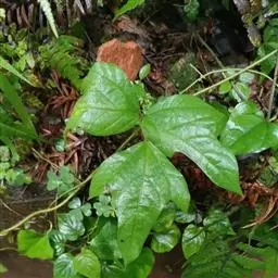 藤本;块根肥厚;各部有黄色长硬毛。小叶3,顶生小叶菱状卵形,长5.5-19厘米,宽4.5-18厘米,先端渐尖,基部圆形,有时浅裂,下面有粉箱,两面有毛,侧生小叶宽卵形,有时有裂片,基部斜形;托叶盾形,小托叶针状。