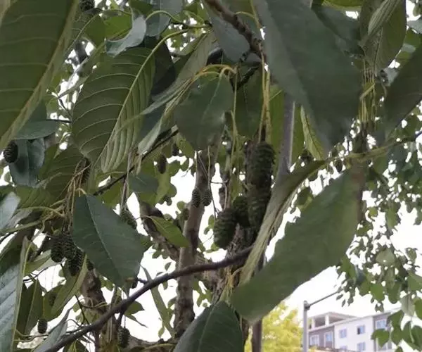 雄花序单生,长3-4厘米。果序单生于叶腋,矩圆形,长1-3.5厘 米,直径5-20毫米;序梗细瘦,柔软,下垂,长4-8厘米,无毛,很少于幼时被短柔毛;果 苞木质,长4-5毫米,顶端具5枚浅裂片。小坚果卵形,长约3毫米,膜质翅宽仅为果的 1/2。 [1-2]