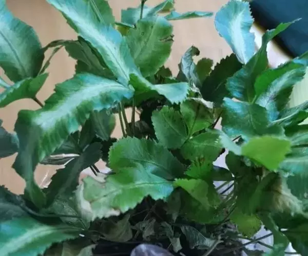 植株高50-70厘米。根状茎短而直立或斜升,粗约1厘米,先端被黑褐色鳞片。叶簇生,二型或近二型;柄长30-45厘米(不育叶的柄较短),基部粗约2毫米,禾秆色,有时带棕色,偶为栗色,表面平滑;叶片卵圆形,长25-30厘米,宽15-20厘米,一回羽状;不育叶的羽片(2)3-5对,10-18(24)厘米,宽1-1.5(2)厘米,先端渐尖,基部阔楔形,叶缘有软骨质的边并有锯齿,锯齿往往粗而尖,也有时具细锯齿;能育叶的羽片3-5(8)对,对生或向上渐为互生,斜向上,基部一对有短柄并为二叉,偶有三叉或单一,向上的无柄,线形(或第二对也往往二叉),长12-25厘米,宽5-12毫米,先端渐尖并有锐锯齿,基部阔楔形,顶生三叉羽片的基部不下延或下延。主脉下面强度隆起,禾秆色,光滑;侧脉两面均明显,稀疏,斜展,单一或从基部分叉。叶干后纸质,绿色或灰绿色,无毛;叶轴禾秆色,表面平滑。