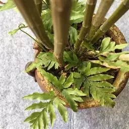 风尾蕨常年翠绿,宜用紫砂晦盆或釉晦盆,色泽用深紫、浅红、淡黄为佳,盆形以较浅的圆盆、六角盆为多 盆土要求肥沃疏松、排水通气性好而富吉腐殖质,笔者常用腐叶土、泥炭土或田园土、砻糠灰或细河砂等量配制成培养土。上盆和换盆通常结合分株繁殖和孢子繁殖时进行。一般每隔2—3年换一次盆。