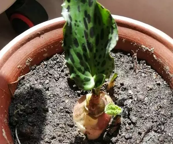 油点百合是常见的小品盆栽,市面上常见以3寸盆栽种贩卖,其实油点百合也是属于多肉植物的一员,观赏重点除了有斑纹的叶子外,肥短的紫红球茎也很讨喜。