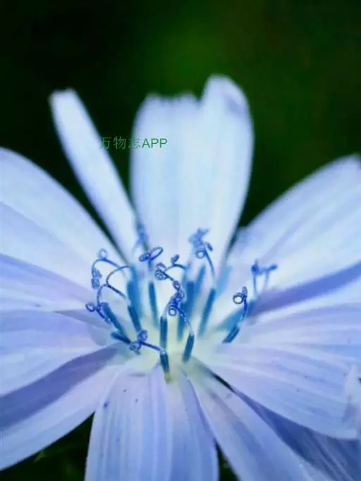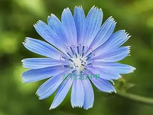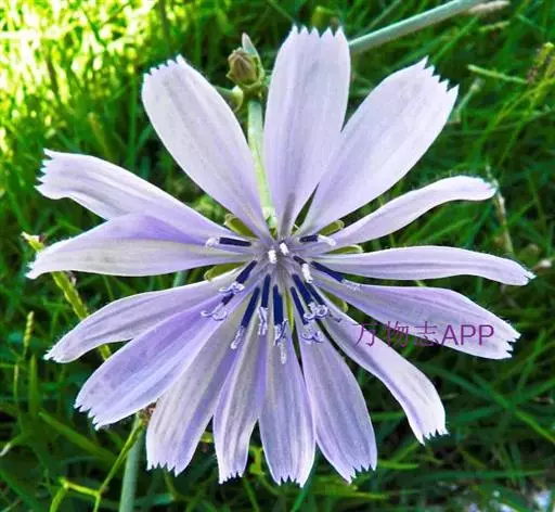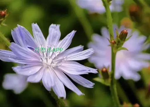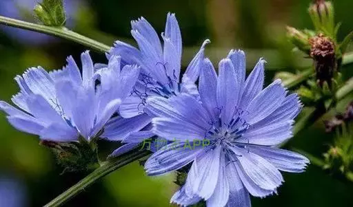 3、菊苣:茎表面近光滑。茎生叶少,长圆状披针形。头状花序少数,簇生;苞片外短内长,无毛或先端被稀毛。瘦果鳞片状,冠毛短,长0.2~0.3mm。