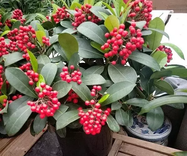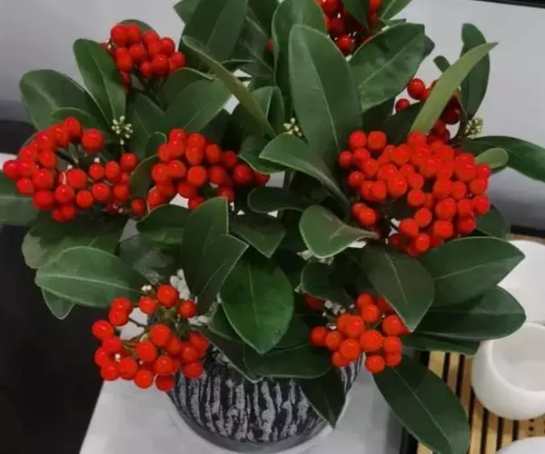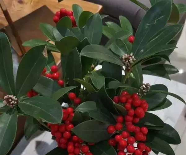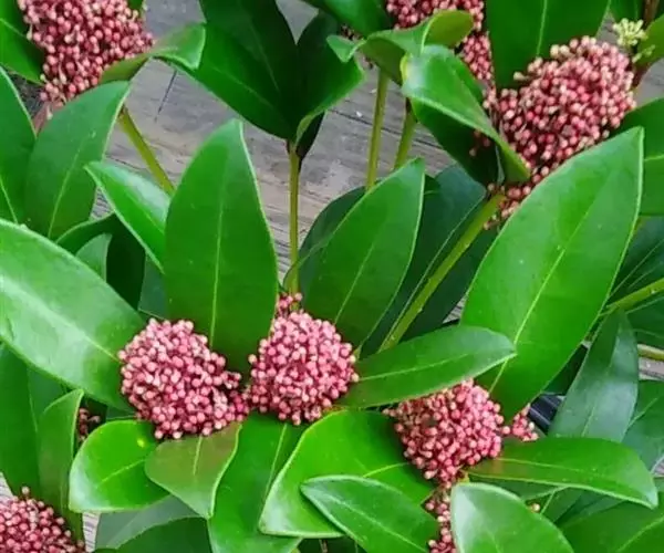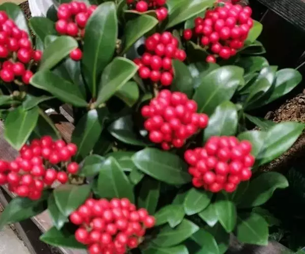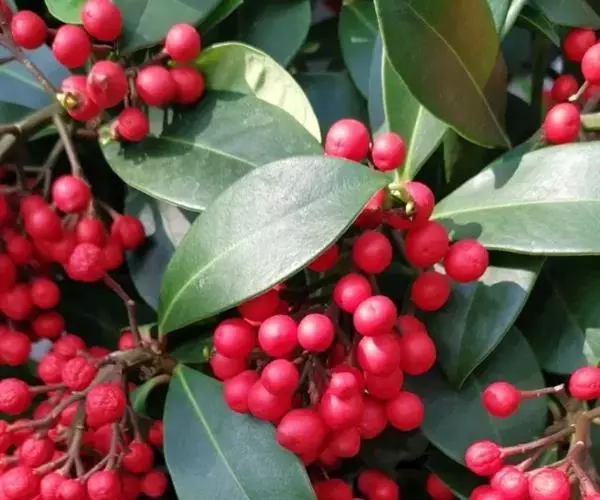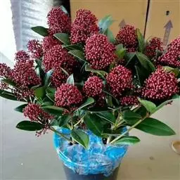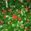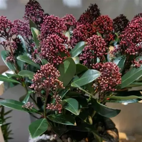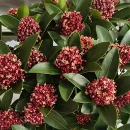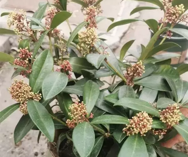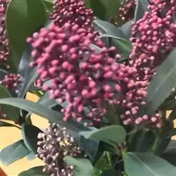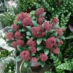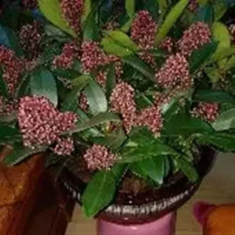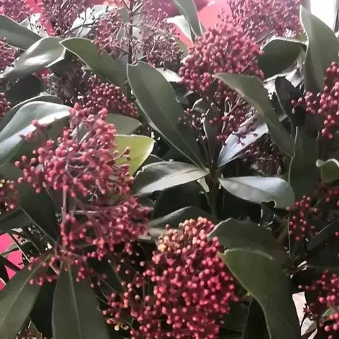 茵芋(Skimmia reevesiana (Fortune) Fortune),是芸香科茵芋属的灌木植物。茵芋小枝常中空,皮淡灰绿色,光滑;叶有柑橘叶的香气,革质,集生于枝上部,叶片椭圆形、披针形、卵形或倒披针形,端短钝尖,基部宽楔形;花序轴及花梗均被毛;花密集,芳香,淡黄白色,萼片半圆形,边缘被短毛,花瓣黄白色;果球形、椭圆形或倒卵形;种子扁卵形,具极小窝点;花期3-5月,果期9-11月。茵芋原产中国的喜马拉雅山区至日本一线都有分布,在中国东南沿海各省区,以及湖南、湖北、广西、贵州等省区也有栽培。茵芋喜温暖和阳光照射的环境,也稍耐阴,不耐寒;喜在深厚、肥沃、疏松透气、富含有机质的微酸性土壤中生长。茵芋一般采用播种和扦插的繁殖方式。茵芋的茎、叶可药用;性味辛、苦,温,有祛风除湿的功效。《本经》载:“主五脏邪气,心腹寒热,羸瘦如疟状,发作有时;诸关节风湿痹痛”。茵芋有一定的观赏价值;其繁茂