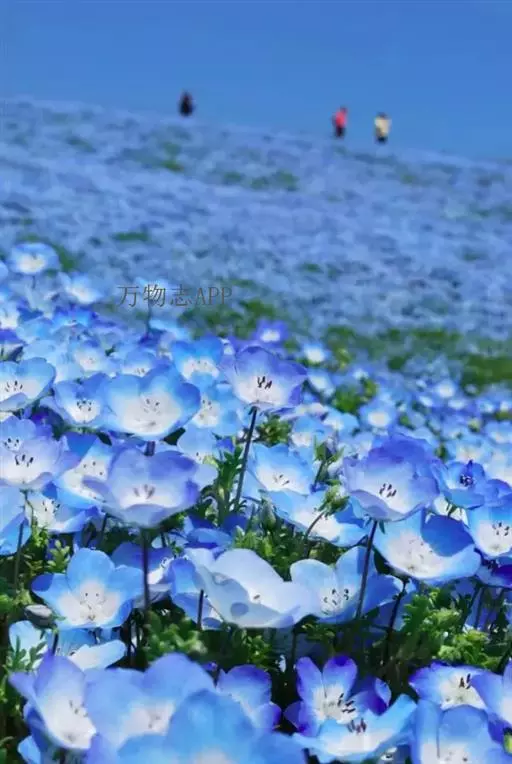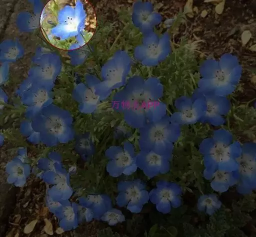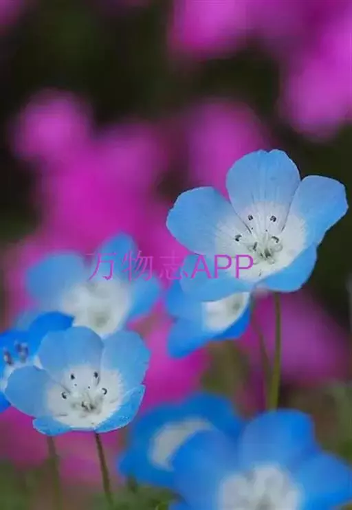 株高约30公分,清澄之紫蓝色花、中心白色。耐寒性强,即使下霜的地区也可越冬,适合盆钵、花坛栽植。在日本,粉蝶花对其国人已不陌生,且受当地人们普遍种植,论花色、论花型、论植株型态,都是非常好的盆栽植物。在台湾平地,因夏季气候炎热,生长势较差,以致开花会受影响。9~10月是最佳的播种期,翌年4~5月开花,发芽适温约15~22℃,生育温度5~28℃,比较适合在冷凉的天候下栽植。若想于春天播种,则在春末夏初天气渐渐炎热之际,将其置于遮荫且凉爽通风,有明亮光线的地方,注意浇水,避免过于干旱,那么也是可以在夏天看到她开花。