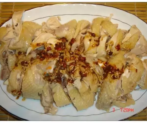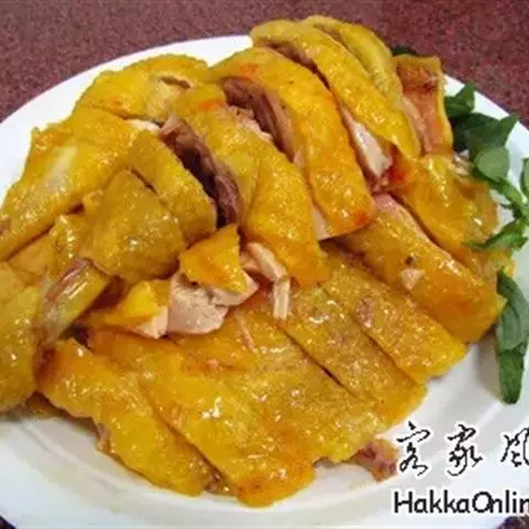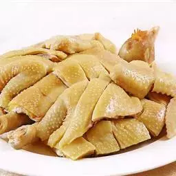1. 白斩鸡又称白切鸡、三黄油鸡,是粤菜传统名菜,多作为宴席冷盘,供佐酒之用。白斩鸡始于清代的民间酒店,因烹鸡时不加调味白煮而成,食用时随吃随斩,故称“白斩鸡”。又因其用料,广东省清远市阳山县出品的三黄鸡(脚黄、皮黄、嘴黄),故又称三黄油鸡。后来广东各饭店和熟食店都经营“白斩鸡”,不仅用料精细,而且还用熬熟的“虾子酱油”同鸡一起上桌蘸食。此菜色泽金黄,皮脆肉嫩,滋味异常鲜美,久吃不厌 。