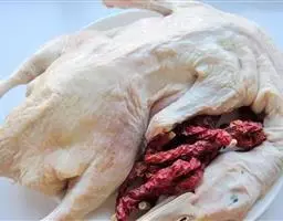 用香油把鸡身抹一遍,可防止鸡皮风干。