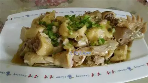 肉色洁白皮带黄油,具有葱油香味,葱段打花镶边,食时佐以酱油或特制普宁豆酱,保持了鸡肉的鲜美、原汁原味,食之别有风味。