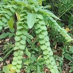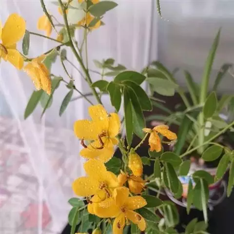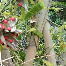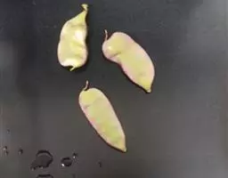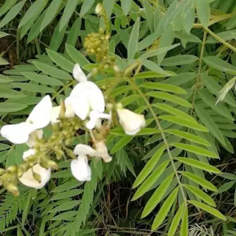 荚果带状,长10-18厘米,宽1.4-3厘米,顶端凸尖,基部有柄,纵裂,被微柔毛;种子6-25颗,卵形,长约7.5毫米,褐色,扁平,光亮。花期4-7月;果期8-10月。