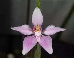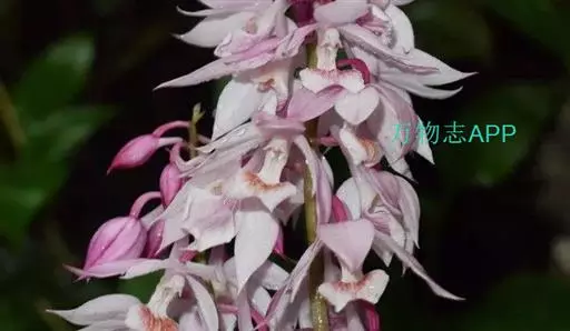 无距虾脊兰:假鳞茎近圆锥形,粗约1厘米,具3-4枚鞘和2-3枚叶。叶在花期尚未完全展开,…