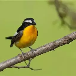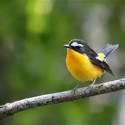 白眉姬鹟是小型鸟类,体长11-14厘米。雄鸟上体大部黑色,眉纹白色,在黑色的头上极为醒目。腰鲜黄色,…