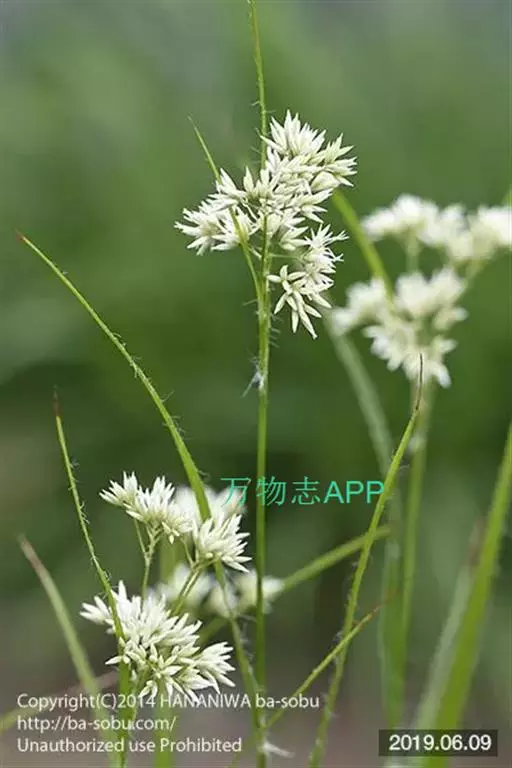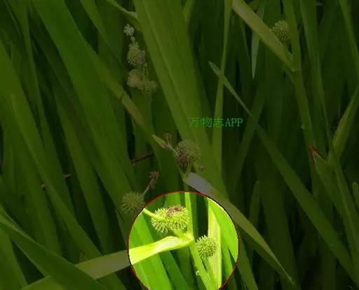 圆锥花序开展,长20-60厘米,具3-7个侧枝,每个侧枝上着生7-11个雄性头状花序和1-2个雌性头状花序,主轴顶端通常具3-5个雄性头状花序,或更多,无雌性头状花序;花期雄性头状花序呈球形,直径约10毫米;雄花花被片匙形,膜质,先端浅裂,早落,花丝长约3毫米,丝状,弯曲,褐色,花药近倒圆锥形,长约1-1.2毫米,宽约0.5毫米;雌花花被长5-7毫米,宽约1-1.5毫米,着生于子房基部,宿存,柱头分叉或否,长约3-4毫米,向上渐尖,花柱长约1.5毫米,子房无柄。果实长6-9毫米,倒圆锥形,上部通常膨大呈冠状,具棱,褐色。花果期5-10月。