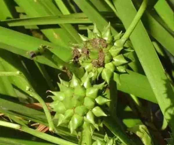 该种植株高大,粗壮;且有大型圆锥花序,主轴无雌性头状花序;果实大,具棱,易于区别。