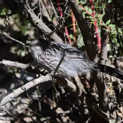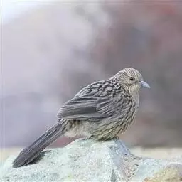 大草鹛中型鸟类,体长31~34厘米。上体灰色具粗著的黑褐色条纹,腰和尾上覆羽纵纹不明显。颊和耳羽灰色,…