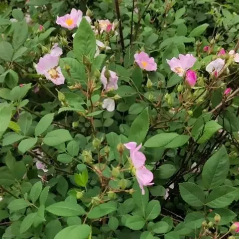 白蔷薇:直立灌木,高约2米;小枝有不等钩状皮刺,有时混有刺毛。小叶通常5,稀7,宽椭圆形或卵形,…