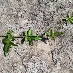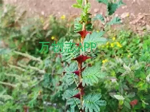 幼枝密被针刺及宽扁大形紫色皮刺,小叶片上面叶脉明显,下面被柔毛。