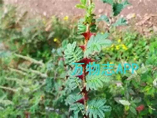 幼枝密被针刺及宽扁大形紫色皮刺,小叶片上面叶脉明显,…
