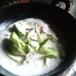 1、鲢鱼收拾干净,洗净,切小块。 2、丝瓜去皮,洗净,切成段,与鲢鱼一起放入锅中,再放入生…
