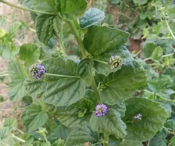 一年生直立草本,高60-150厘米。枝坚硬,疏被白色绒毛,有明显腺点。叶为单叶,有时有1片长约1-2厘米的侧生小叶;托叶镰形,长7-8毫米;叶柄长2-4.5厘米,有腺点;小叶柄长2-3毫米,被白色绒毛;叶宽卵形,长4.5-9厘米,宽3-6厘米,先端钝或锐尖,基部圆形或心形,边缘有粗而不规则的锯齿,质地坚韧,两面有明显黑色腺点,被疏毛或近无毛。