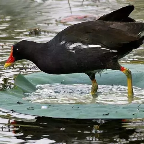 黑水鸡:是鹤形目、秧鸡科的鸟类,共有12个亚种。中型涉禽,体长24-35厘米。嘴长度适中,…
