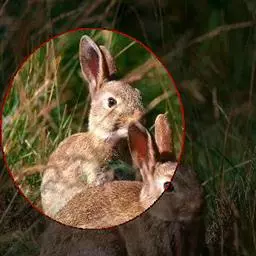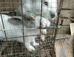 驯养过程:将一雄二雌小兔放入兔窝,外面放好食物、水、舔食盐块。刚刚放进的小兔十分胆小,在门口探头探脑,时不时的走出窝外,但又马上返回窝内,经过多次的探索观察,胆子逐渐大了起来,敢走到窝外一两米的地方查看,见到食物能吃上几口又马上返回窝内,经过多次多天的反复练习,小兔就能走到外面的草地上肯吃青草、喝水、舔食盐块了,胆量也得到进一步的锻炼,能跑到较远处肯吃青草,打斗玩耍,能主动找到水源喝水,当小兔长到一月龄时,就可以将食物断掉,只留下舔食盐块,兔窝、舔食盐块是吸引兔子最理想的东西,长大的兔子不管跑到那里,跑多远,它们都必须回来甜食盐块,这也是兔子最喜欢吃的微量元素。当兔子在受到惊吓时,或是有狗追兔子的时候,兔子首先是向兔窝方向奔跑,躲藏。