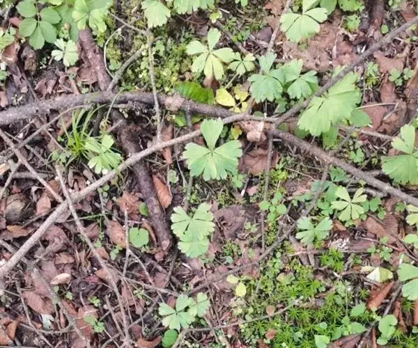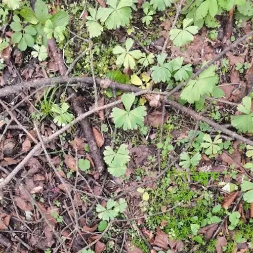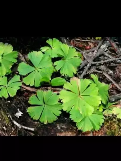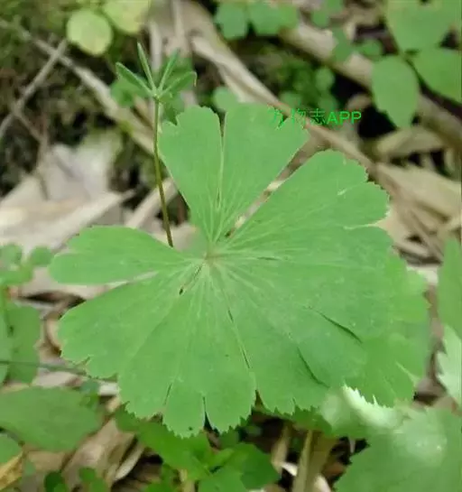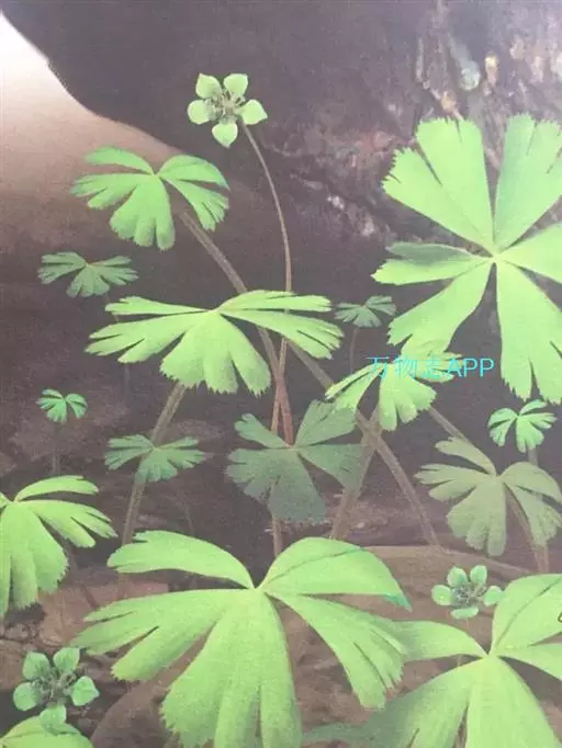 独叶草 叶基生,有长柄,叶片心状圆形,宽3.5-7厘米,五全裂,中、侧全裂片三浅裂,最下面的全裂片不等二深裂,