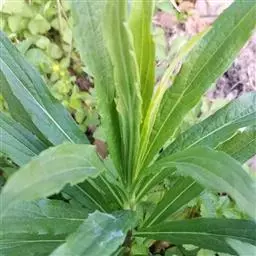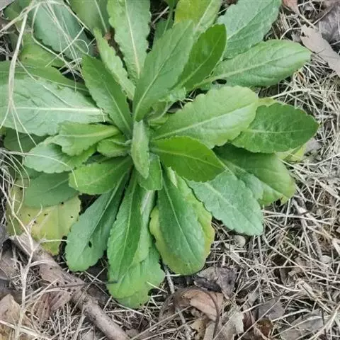 一年生或二年生草本,根纺锤状,直或弯,具纤维状根。茎粗壮,直立,高80-150厘米,基部径4-6毫米,具条棱,绿色或下部红紫色,中部或中部以上有长分枝,被较密灰白色上弯糙短毛,杂有开展的疏柔毛。叶密集,基部叶花期凋落,下部叶倒披针形或披针形,长6-10厘米,宽1-3厘米,顶端尖或渐尖,基部渐狭成柄,边缘上部每边常有4-8个粗齿,基部全缘,中部和上部叶渐小,狭披针形或近线形,具齿或全缘,两面特别下面被密糙短毛。