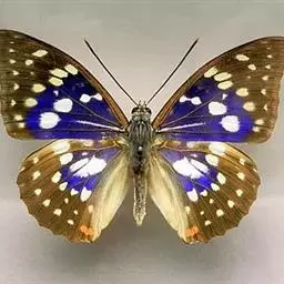 大紫蛱蝶为大型蝶种,翅展约86~110mm。翅紫黑色,有白色斑点点缀其中,雄蝶的翅具强烈紫色虹彩,…