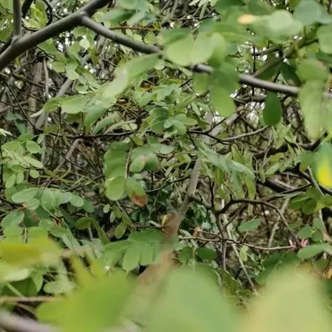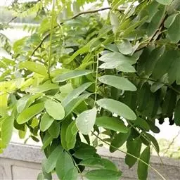 乔木,高7-10米,具平展的分枝。羽状复叶长25-30厘米;叶轴长23-25厘米;托叶大,叶状,卵形至卵状披针形。长约1厘米,宽6毫米,脱落;小叶6-10对,纸质,长圆形或长圆状椭圆形,长3-5(-6)厘米,宽1.5-2.5(-3)厘米,先端钝、圆或凹入,基部圆形或楔形,两面疏被伏贴短柔毛,上面渐变无毛;细脉纤细密集,两面略隆起;小叶柄长约5毫米,被短柔毛,毛很快脱落。