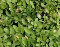 板凳果常绿亚灌木,铺地生长。株高20cm,冠径25cm。每个茎顶端生3~6片叶,叶卵形,边缘有锯齿,…