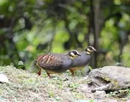 褐胸山鹧鸪:雄鸟体长22厘米,体重310克;雌鸟体长23厘米,体重220-275克。前额皮黄白色,…