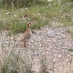 体大的灰褐色鹑类。胸灰色具黑色细纹。与相似种类四川雉鹑不同处在于栗色喉块外缘近白。有猩红色眼周裸皮。…